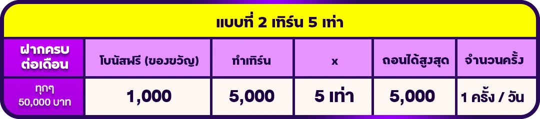 ✅ เมื่อมียอดฝากสะสม ทุกๆ 50,000